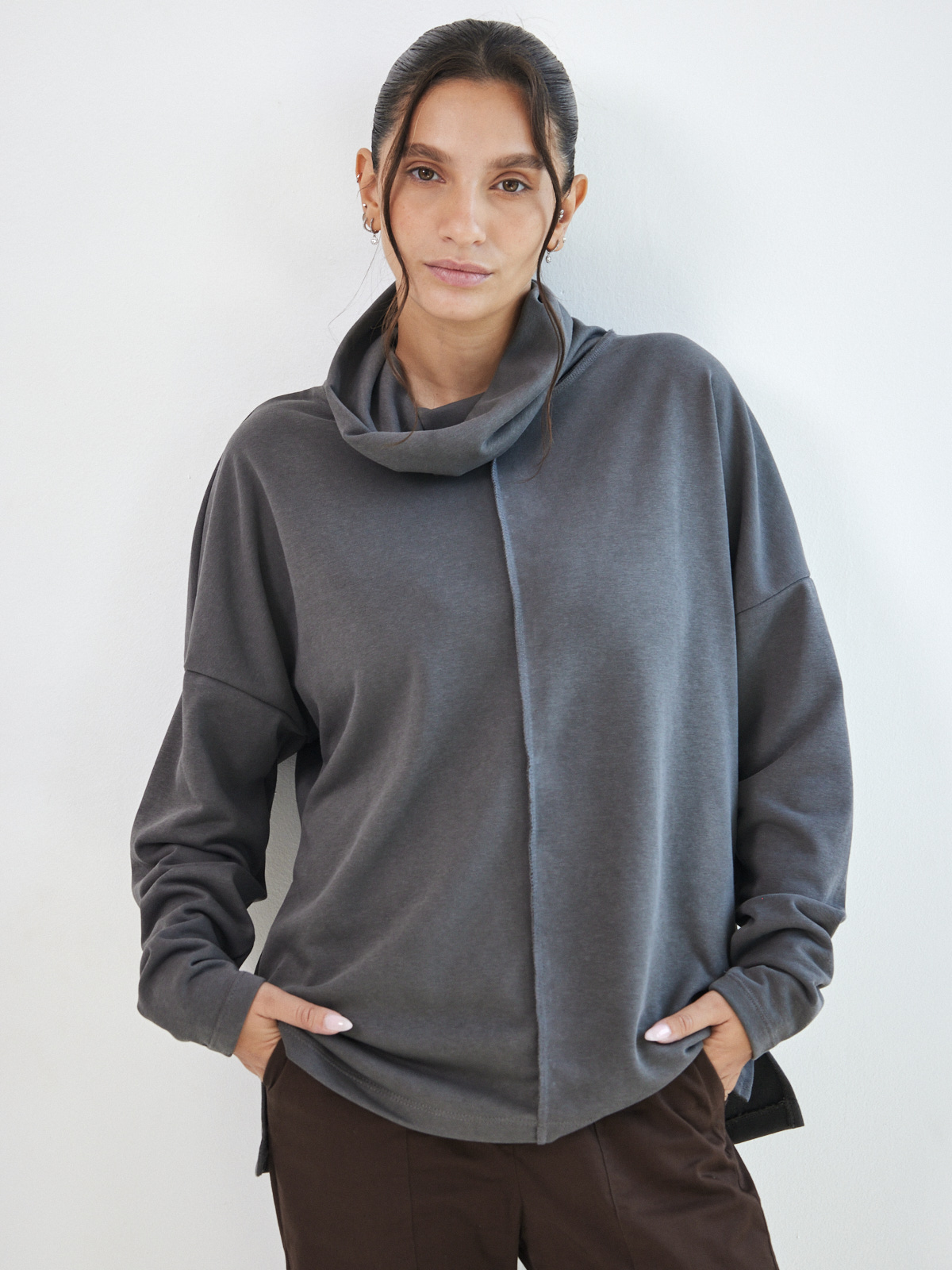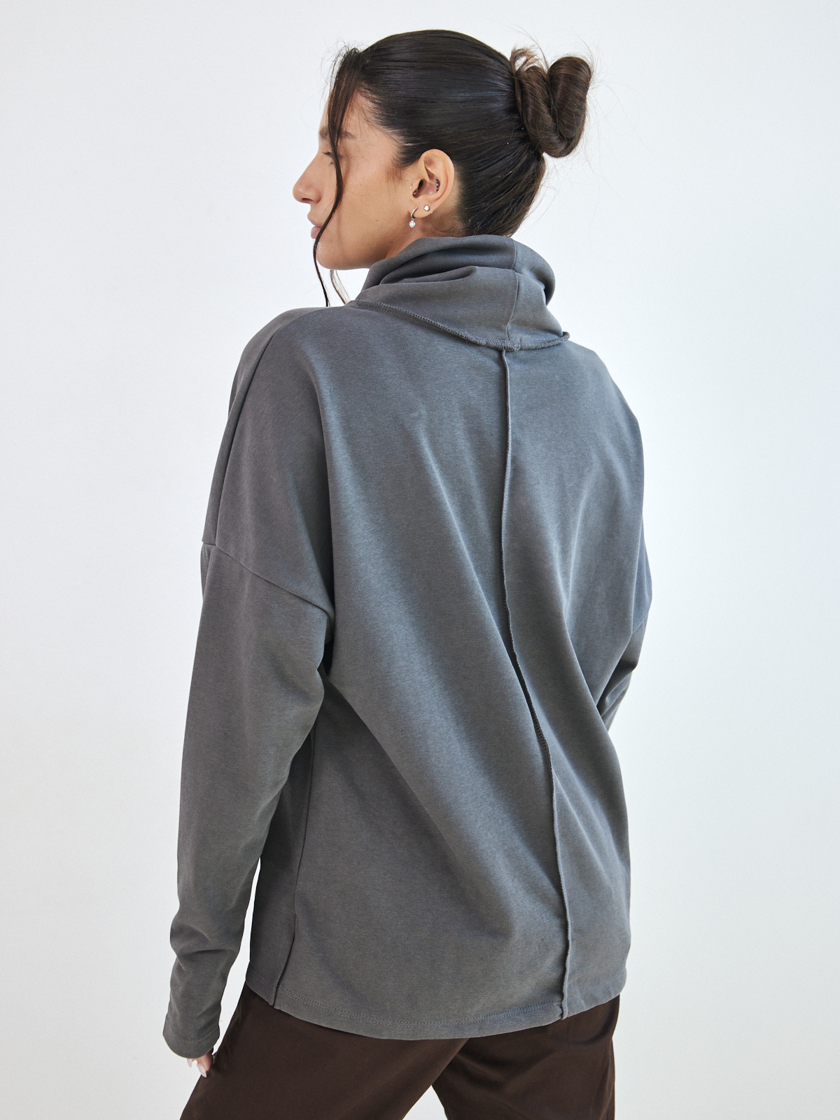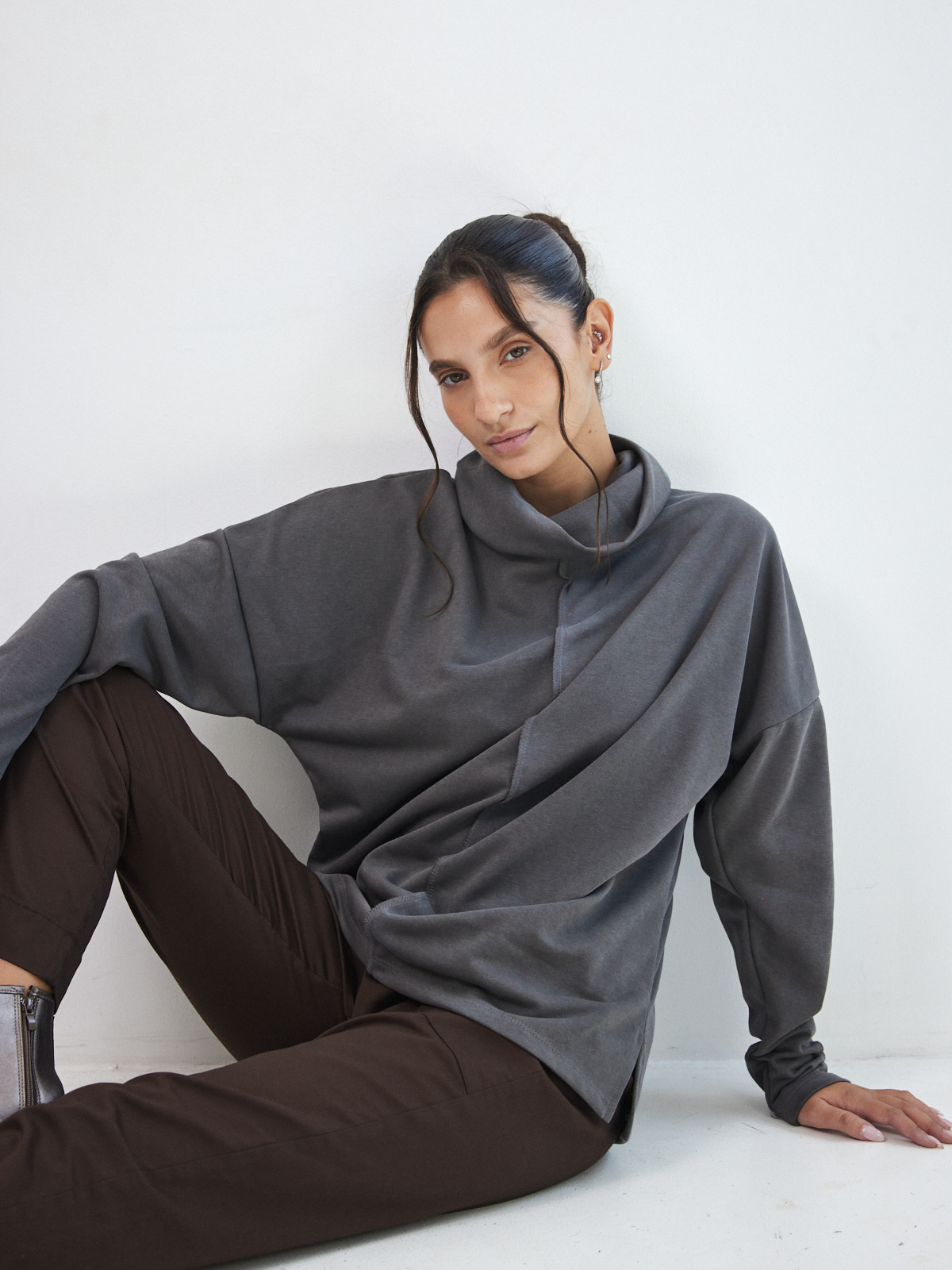 חולצת כותנה עם צווארון גולף ותיפור מודגש