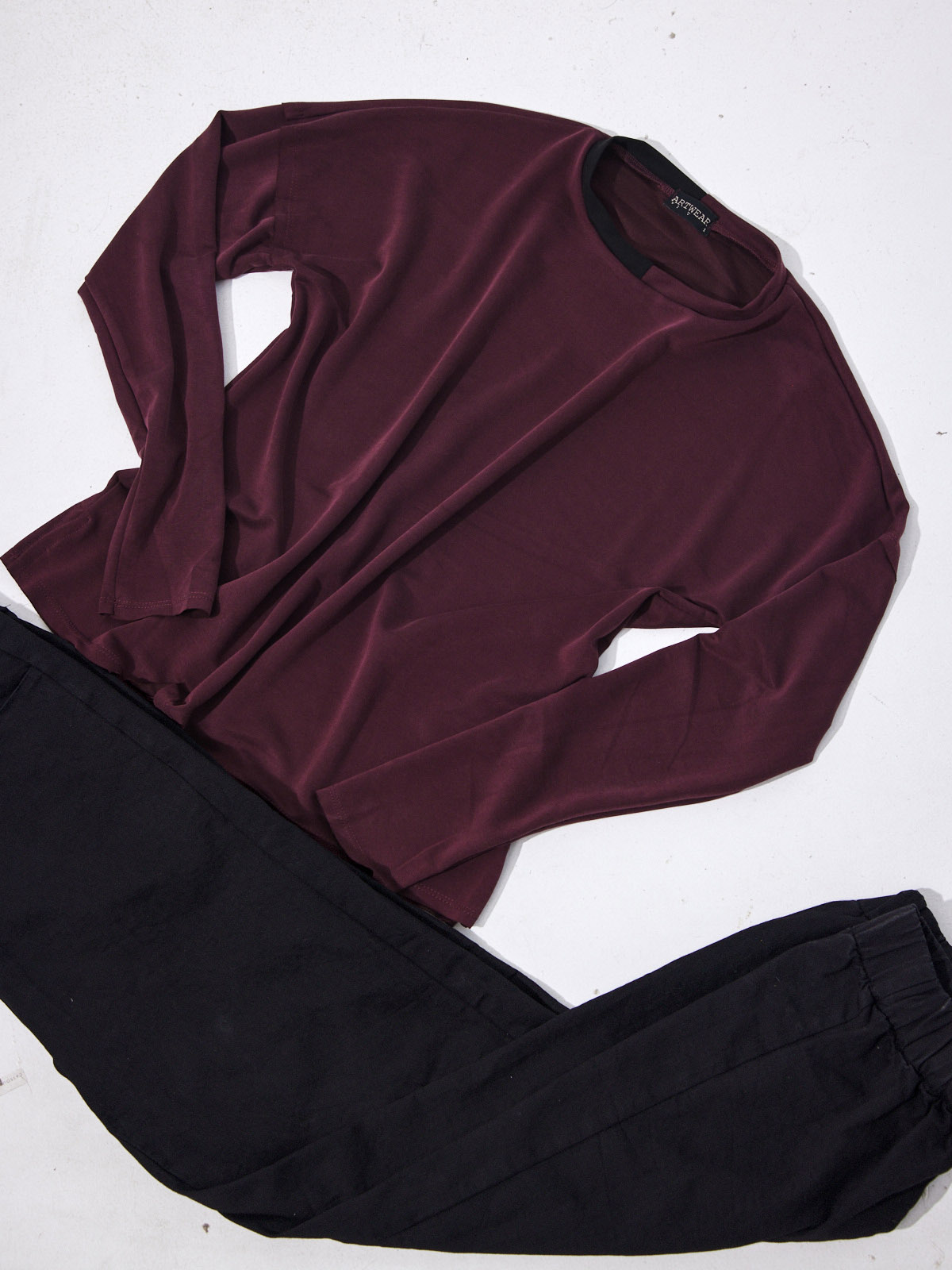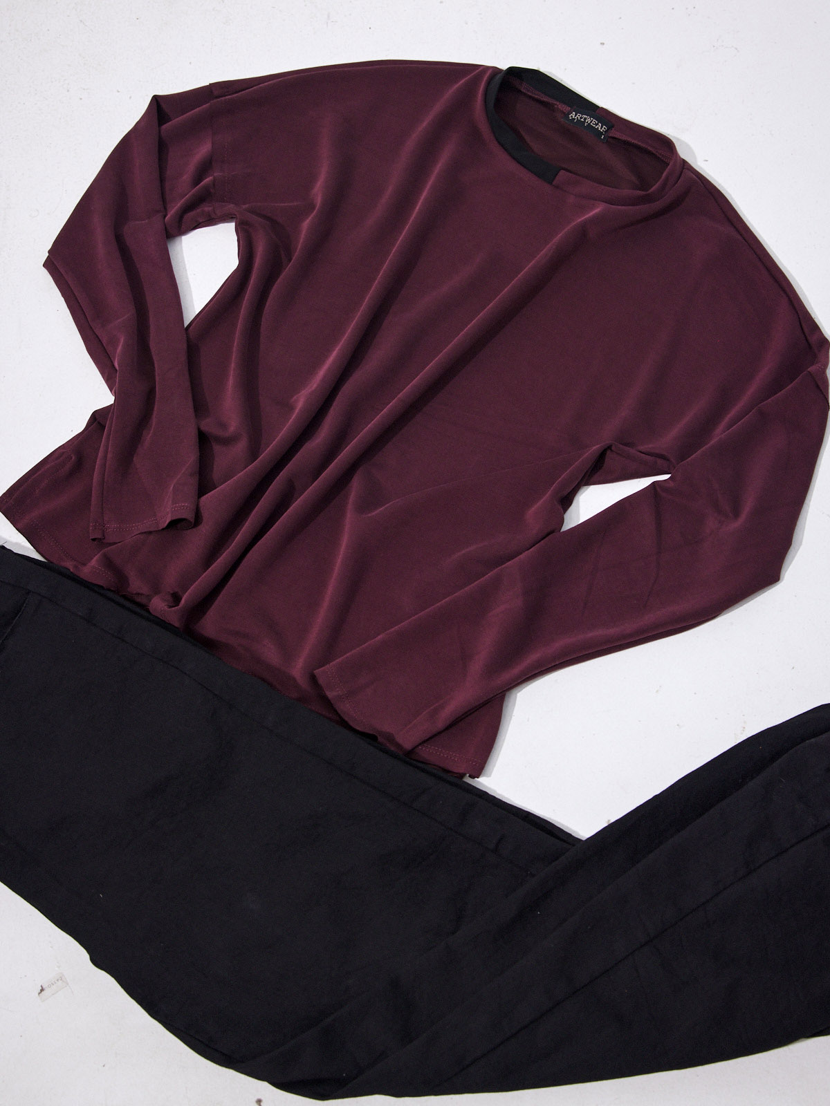 עם צווארון בגוונים מתחלפים בורדו שחור
